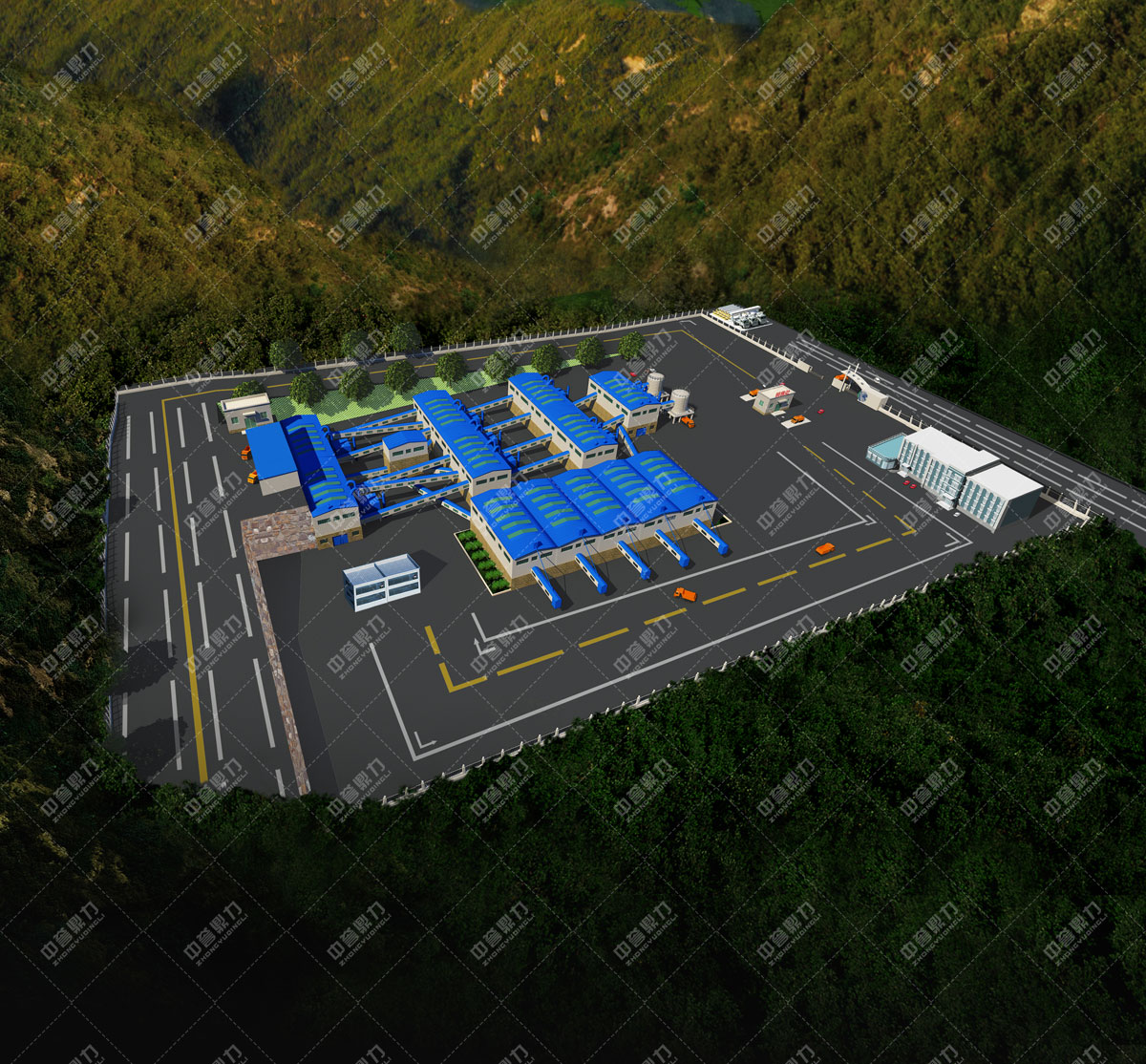 - 主機設(shè)備:振動給料機ZGC2050*2臺、重型錘式破碎機PCZ1820*2臺、整形破碎機PC1220*4臺、振動篩3YKZ3070*8臺、2YKZ3070*8臺