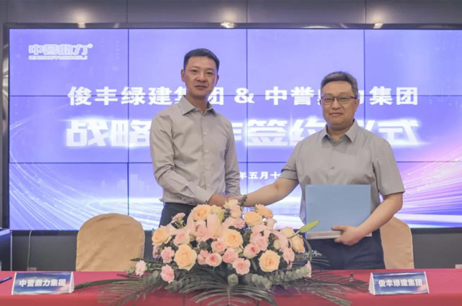 簽約儀式上,荊門俊豐綠建集團黨委書記、董事長胡錕與中譽鼎力集團董事長張治民代表雙方正式簽訂《戰略合作協議》。