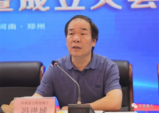 河南省自然資源廳總工馮進城致辭,希望河南省砂石協會發揮好紐帶和橋梁的作用