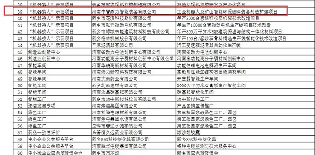 經過為期7天的公開公示,河南中譽鼎力智能裝備有限公司的“工業機器人及礦山智能環保破碎裝備制造擴建項目”作為“機器換人”項目,順利獲得2021年河南省制造業高質量發展專項資金支持!