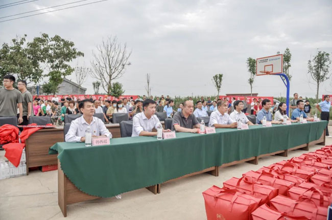 8月26日下午,衛(wèi)輝市委常委、辦公室主任、太公鎮(zhèn)黨委書記胡良,衛(wèi)輝市副市長孫建明,衛(wèi)輝市政協(xié)副主席崔福明,共青團(tuán)衛(wèi)輝市委書記鄭鑫,衛(wèi)輝市教育局局長孫西,衛(wèi)輝市教育局副局長焦元玉,衛(wèi)輝市太公鎮(zhèn)黨委副書記、鎮(zhèn)長劉營斌,周邊32個村支部書記、受資助學(xué)生及家長、村民代表共計200余人參加捐贈儀式。