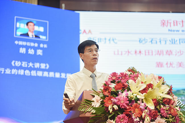 隨后,中砂石協會會長胡幼奕從當前家環保形勢、各級發布砂石文件、砂石骨料市場需求及砂石產業發展模式等角度出發,作“砂石行業的綠色低碳高質量發展”的課程講解。