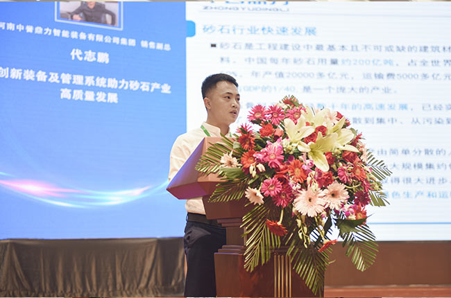 中譽鼎力銷售副總監代志鵬以“創新裝備及管理系統助力砂石產業高質量發展”為主題,就行業發展背景、公司創新設備、轉型升級定位和智能管理平臺等內容展開精彩演講,與大家進行業務分享和交流。