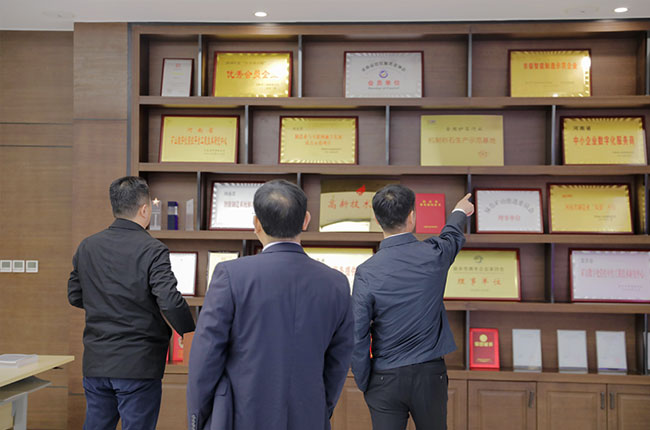 結束對中譽鼎力及公司典型項目的參觀考察之后,河南省科技廳技術轉移中心主任高磊對中譽鼎力積推動建材行業智能環;D型升級的做法表示認可。