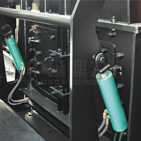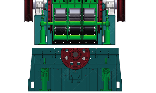 篦架通過液壓調節,可根據所需要物料的大小和錘頭、篦板的磨損程度進行上下調整,省時省力,安。同時配備絲桿、螺母組合的輔助調節方式用來定位篦架,避免液壓缸受力,保障液壓缸使用壽命