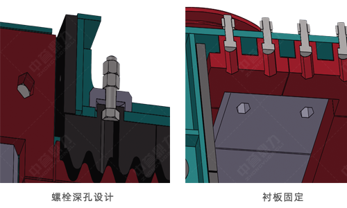 襯板螺栓深孔設計,防止螺栓磨損