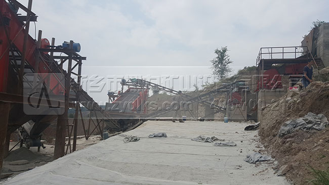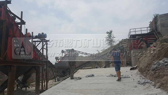 從生產(chǎn)現(xiàn)場我們可以看到,此條日產(chǎn)1500噸砂石料生產(chǎn)線部都是選用我們公司的設(shè)備,原料和成品料之間部都是用皮帶輸送機傳輸?shù)模a(chǎn)流程是流暢,可以自動化的將成品料生產(chǎn)出來,減少了使用額外附加設(shè)備的幾率。