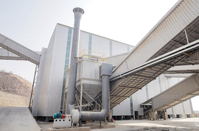 生產線的破碎、篩分、制砂、輸送、儲料等環節均在鋼結構封閉空間內進行,物料生產傳輸采用全封閉皮帶廊輸送,成品料采用大型筒倉存儲。各出塵點設置除塵器,整個生產程物料不落地,避免粉塵外溢和噪聲污染,實現綠色無塵化生產。