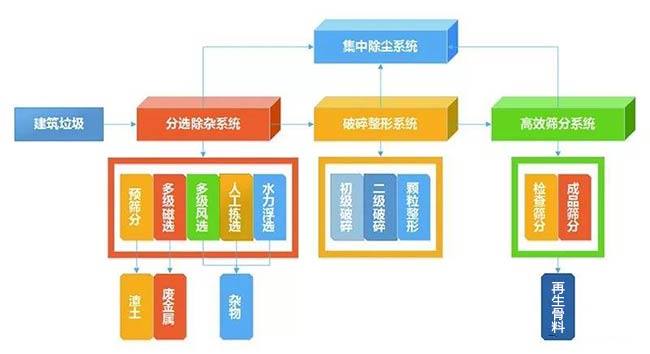 根據(jù)裝修垃圾、拆遷廢料、工程渣土和建筑泥漿等建筑垃圾分類進行相對應(yīng)的分揀處理;