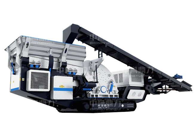 方案二(移動式):隧道洞渣碎石加工一般是短期工程,且場地空間不大,所以大多數(shù)選用移動式破碎設(shè)備,一臺設(shè)備即一條生產(chǎn)線,不需要進行地基建設(shè),運至現(xiàn)場進行簡單固定后即可開機生產(chǎn)。主機設(shè)備可以根據(jù)碎石硬度大小靈活搭配。