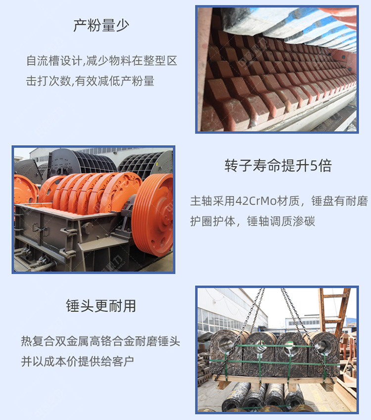 作為內生產大型錘式破碎機生產基地,根據市場需求,中譽鼎力有PCZ重型錘破和XPC整形錘破兩種,型號齊,時產量從100-3000噸不等,其中pcz2125重錘破時加工能力可達3000噸,在河南駐馬店恒強礦業、衛輝市資源有限公司、河北井陘茂鑫礦業、河南禹州鑫利祥建材等多地已有使用。